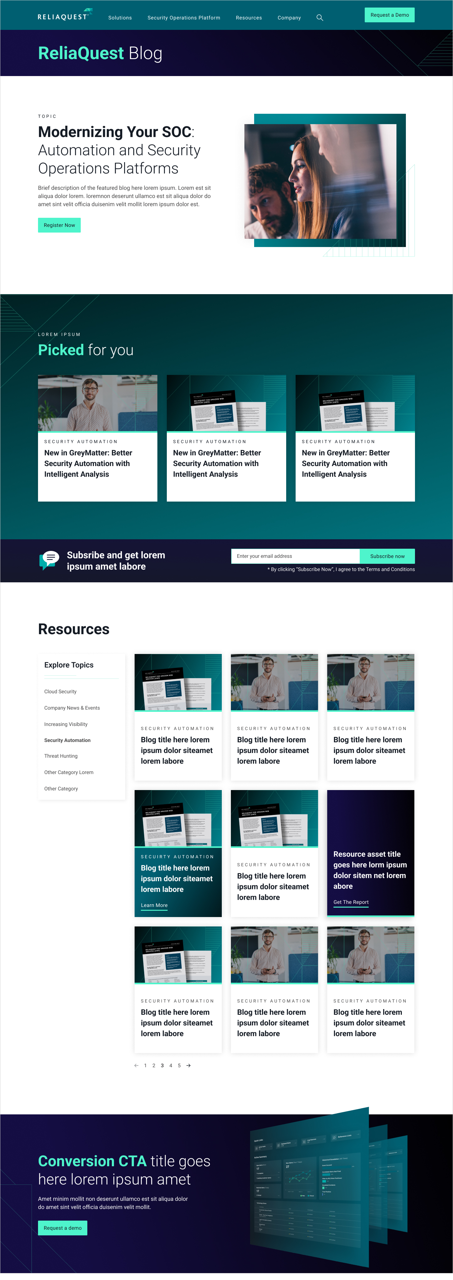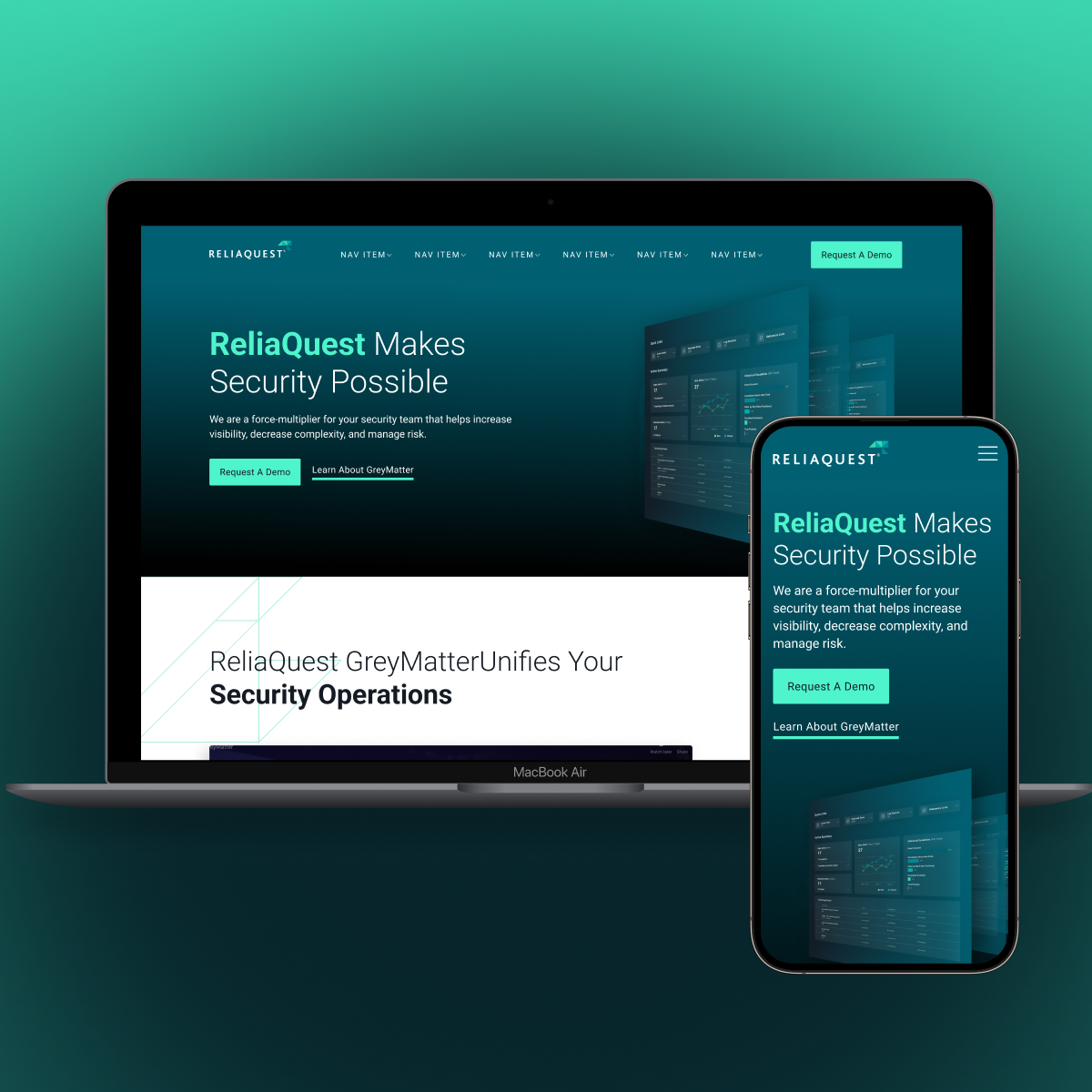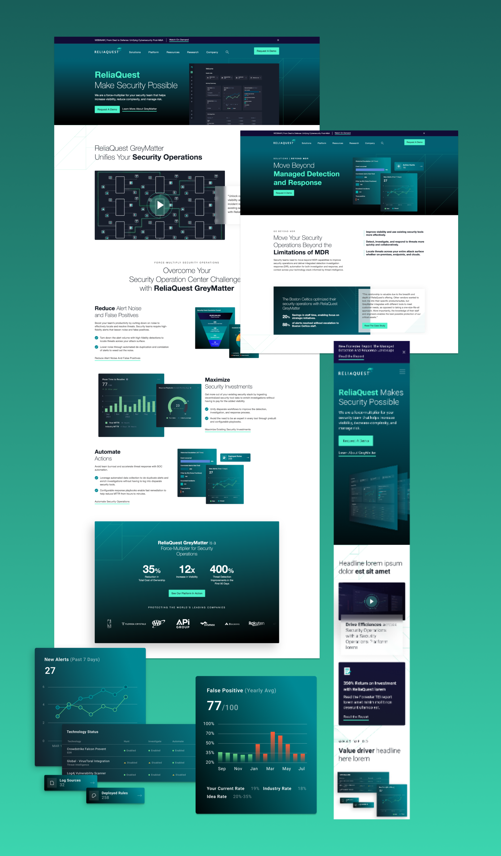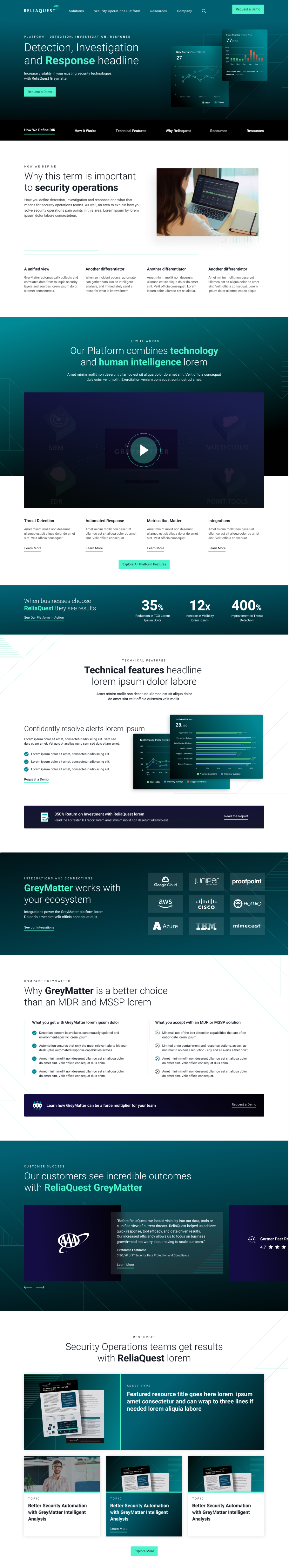 ReliaQuest, a cybersecurity leader, needed a rebrand and website redesign that would better showcase its product and connect with a highly technical audience. The existing site didn’t put the platform front and center, and the brand lacked the developer-focused look, feel, and journeys needed to resonate with security practitioners and decision-makers alike.
