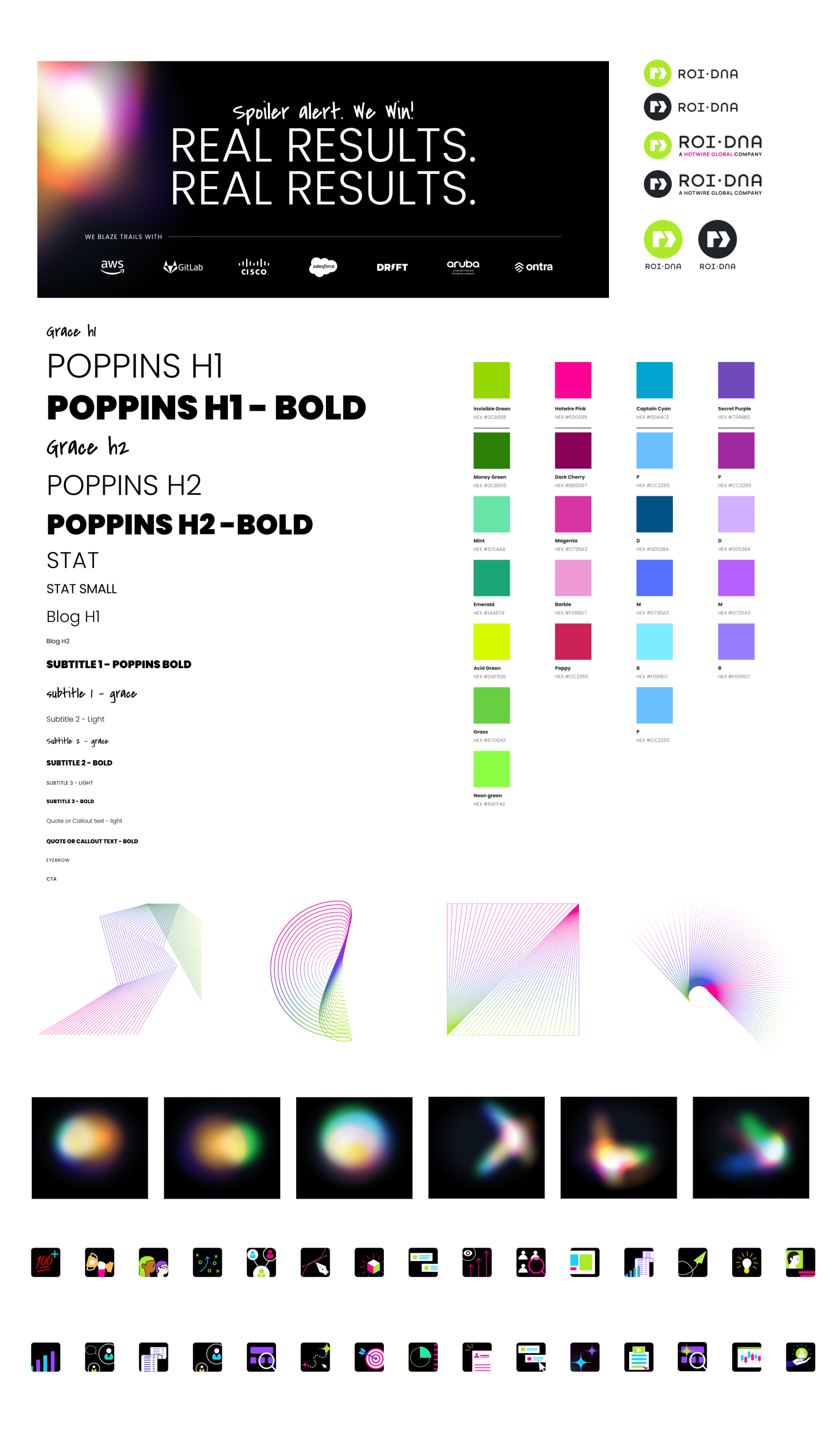Leading the design team, I built the ROI•DNA brand from the ground up — from website design and voice and tone to illustrations, photo treatments, explainer videos, social graphics, and more. I elevated the visual look and feel to appeal to a sophisticated B2B audience, while retaining the sassiness and approachability that made the brand distinctive. The result was a cohesive, modern identity that balanced professionalism with personality, giving ROI•DNA a brand presence as bold as its work.